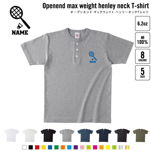 バドミントン1 名入れヘンリーネックTシャツ ヘンリーネック 名入れTシャツ 首元ネコ目ボタン ボタンTシャツ 首元アクセント メンズ レディース ラケット シャトル ネット