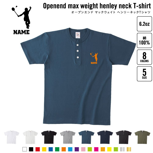 バドミントン2 名入れヘンリーネックTシャツ ヘンリーネック 名入れTシャツ 首元ネコ目ボタン ボタンTシャツ 首元アクセント メンズ レディース ラケット シャトル ネット