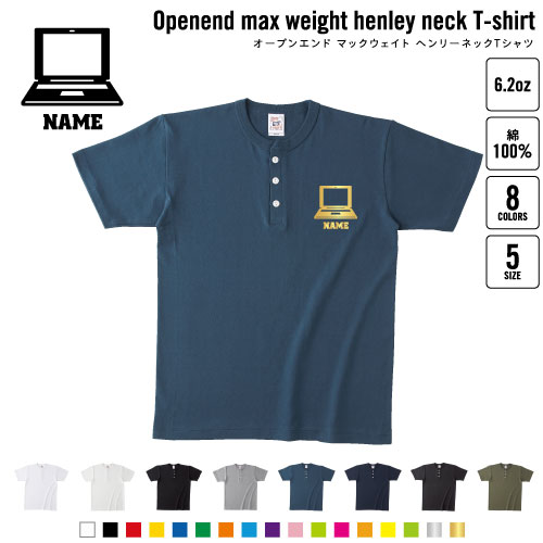 パソコン部 名入れヘンリーネックTシャツ ヘンリーネック 名入れTシャツ 首元ネコ目ボタン ボタンTシャツ 首元アクセント メンズ レディース PC コンピューター