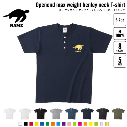 ウミガメ 名入れヘンリーネックTシャツ ヘンリーネック 名入れTシャツ 首元ネコ目ボタン ボタンTシャツ 首元アクセント メンズ レディース
