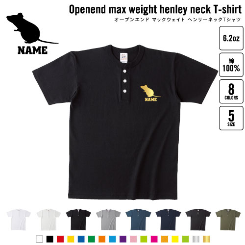 ネズミ 名入れヘンリーネックTシャツ ヘンリーネック 名入れTシャツ 首元ネコ目ボタン ボタンTシャツ 首元アクセント メンズ レディース