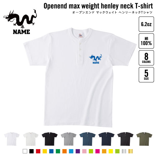龍 名入れヘンリーネックTシャツ ヘンリーネック 名入れTシャツ 首元ネコ目ボタン ボタンTシャツ 首元アクセント メンズ レディース