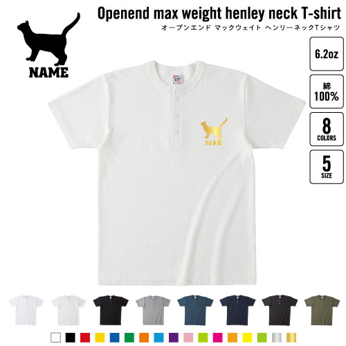ブリティッシュ・ショートヘアー4 名入れヘンリーネックTシャツ ヘンリーネック 名入れTシャツ 首元ネコ目ボタン ボタンTシャツ 首元アクセント メンズ レディース 猫 ネコ ねこ キャット ペット