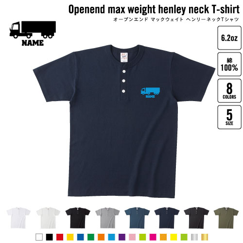 ロングトラック 名入れヘンリーネックTシャツ ヘンリーネック 名入れTシャツ 首元ネコ目ボタン ボタンTシャツ 首元アクセント メンズ レディース 乗り物 車 はたらく 趣味