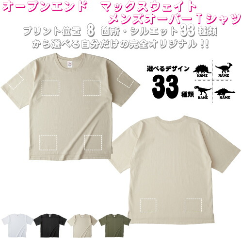 「恐竜」選べるプリント箇所名入れ/名入れオーバーサイズTシャツ ビッグシルエット ゆったり イージーフィット ワイドフィット メンズ サイジング お名前 オリジナル セミオーダーメイド プレゼント お揃い