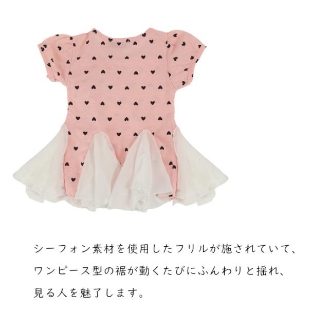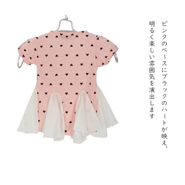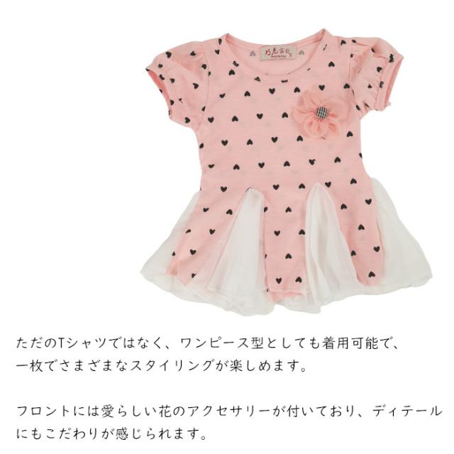 キッズ Tシャツ女の子 夏 Tシャツ子供服 ワンピース型Tシャツ フリル シーフォン 子供服 ハート柄