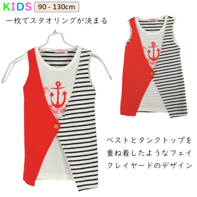 ベストとタンクトップを重ね着したようなフェイクレイヤードのデザイン♪