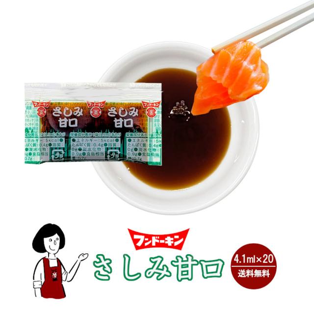 フンドーキン さしみ甘口 4.1ml ×20/ 送料無料 小袋 醤油 しょうゆ 調味料 刺身 甘口醤油 使いきり 携帯用 アウトドア お弁当 イベント 小分け テイクアウト こわけや