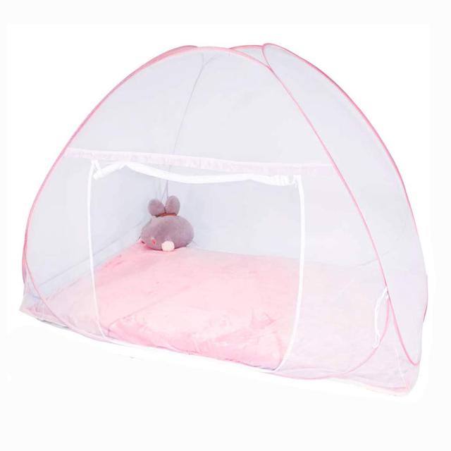 【ワンタッチ式、広げ方は簡単】袋から取り出しポーンと広げるだけでテント型の蚊帳になります。