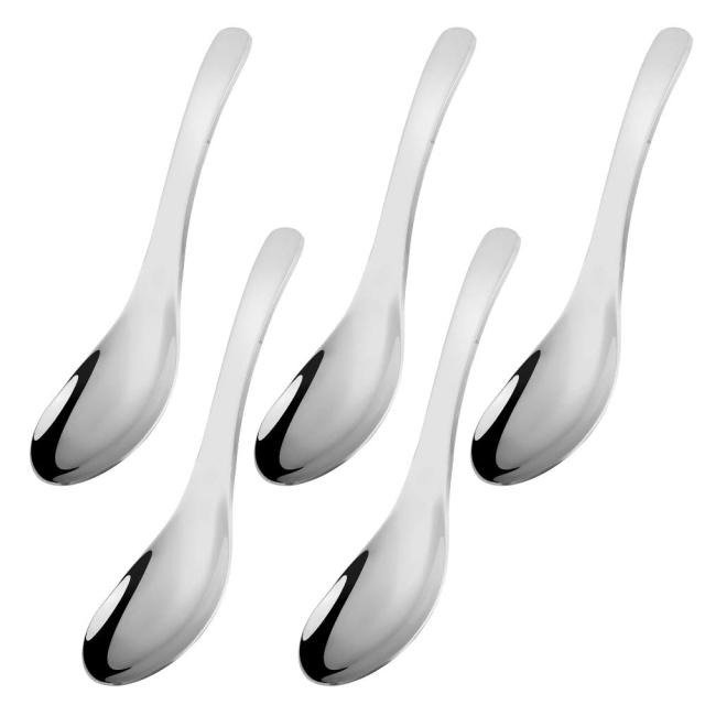 シルバー dongbo レンゲ スプーン スープスプーン 5本セット 大きめ 18-8ステンレス 鏡面仕上げ すくいやすい おしゃれ ラーメン うどん カレー スープ用