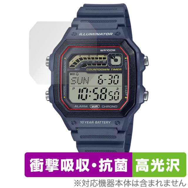 CASIO WS-1600Hシリーズ 保護 フィルム OverLay Absorber 高光沢 for カシオ 腕時計 衝撃吸収 高光沢 ブルーライトカット 抗菌