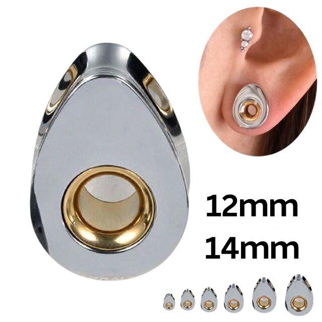 ボディピアス 12mm 14mm ティアドロップ INゴールド ダブルフレア ラージゲージ 拡張 トンネルピアス ステンレスピアス つけっぱなし