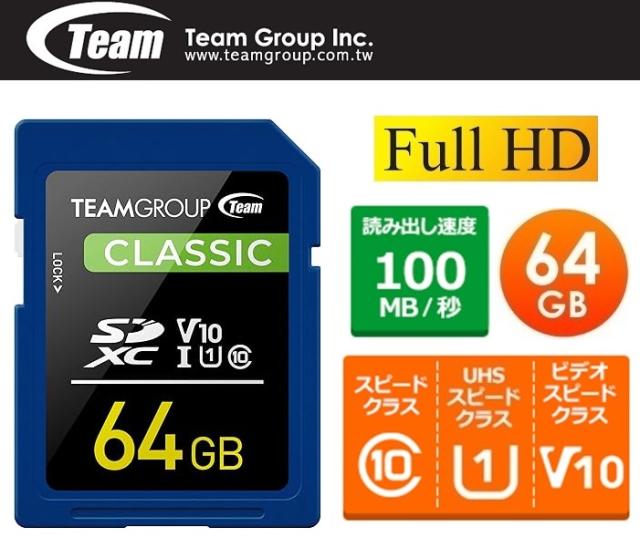 64GB SDXCカード チーム CLASS10 UHS-I V10 100MB/s SDカード高速連写やフルHD録画にTSDXC64GIV1001 TEAM JAPAN
