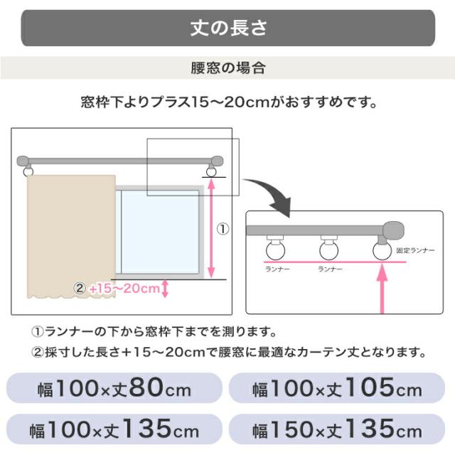 100×丈80cm、100×丈105cm、幅100×丈135cm、幅100×丈178cm、幅100×丈185cm、幅100×丈200cm