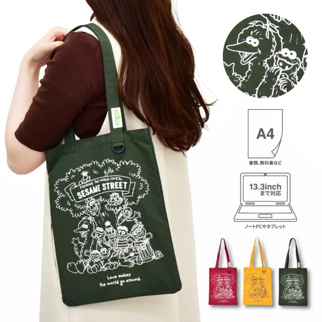SESAME STREET フラットトートバッグ エルモ クッキーモンスター ビッグバード シンプル プリント 手提げかばん ギフト プレゼント ラッピング