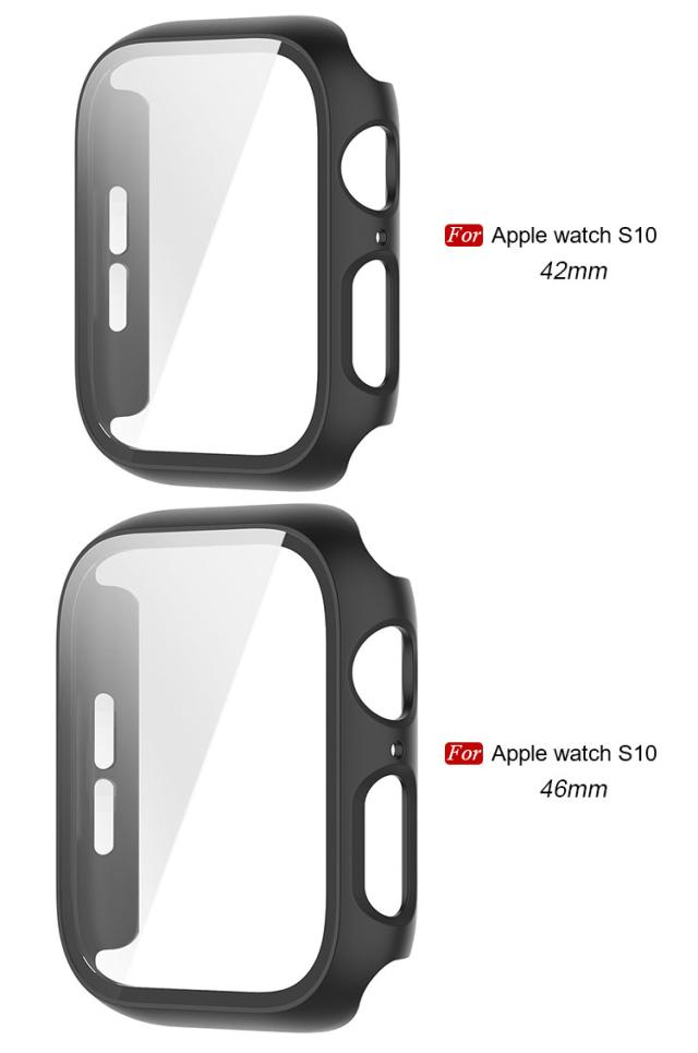 プラスチック+強化ガラス 液晶保護カバー アップルウォッチ10 42mm/46mm 耐衝撃 衝撃吸収 アンドロイド スマートウォッチ 透明