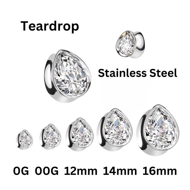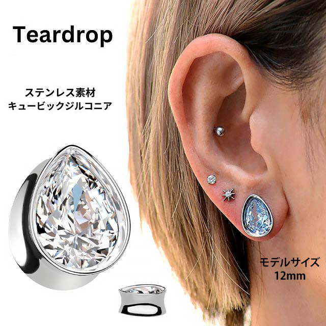 ボディピアス 0G 00G 12mm ティアドロップ INジルコニア ダブルフレア ラージゲージ 拡張 トンネルピアス ステンレスピアス つけっぱなし