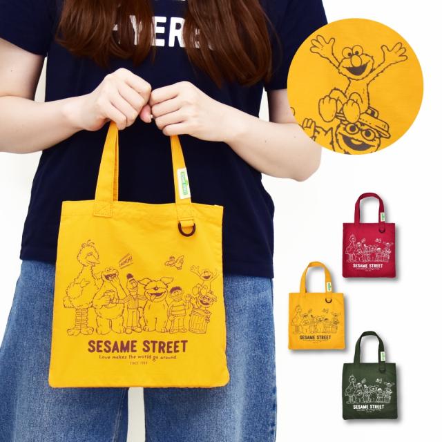 セサミストリート グッズ トートバッグ ナイロン 軽量 ロゴ プリント ミニバッグ 肩掛け フラット レディース メンズ 女子 男子 男女兼用 通勤 通学 旅行 お出かけ 塾バッグ お買い物 大人 学生 子供 ママ 可愛い キャラクター