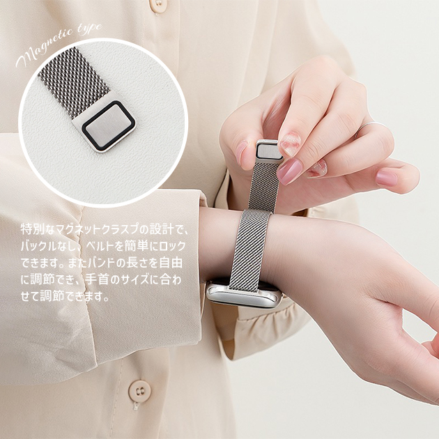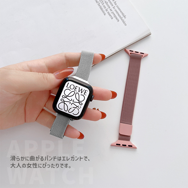 アップルウォッチ 9 SE バンド 女性 Apple Watch Ultra バンド 45mm マグネット ベルト 40mm 44mm ステンレス 細身