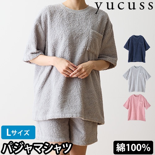 ユクスス ルームウェア しっかりタオル生地のパジャマシャツ Lサイズ 部屋着 寝巻き かわいい レディース メンズ 涼しい セットアップ可 ゆったり 半袖 Tシャツ お風呂上がり 夏 綿 楽ちん おしゃれ 外出 コットン 大きいサイズ yucuss