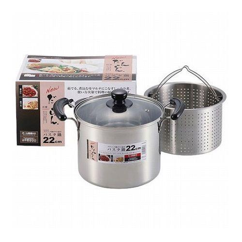 NEWだんらん ステンレス製ガラス蓋付パスタ鍋22cm