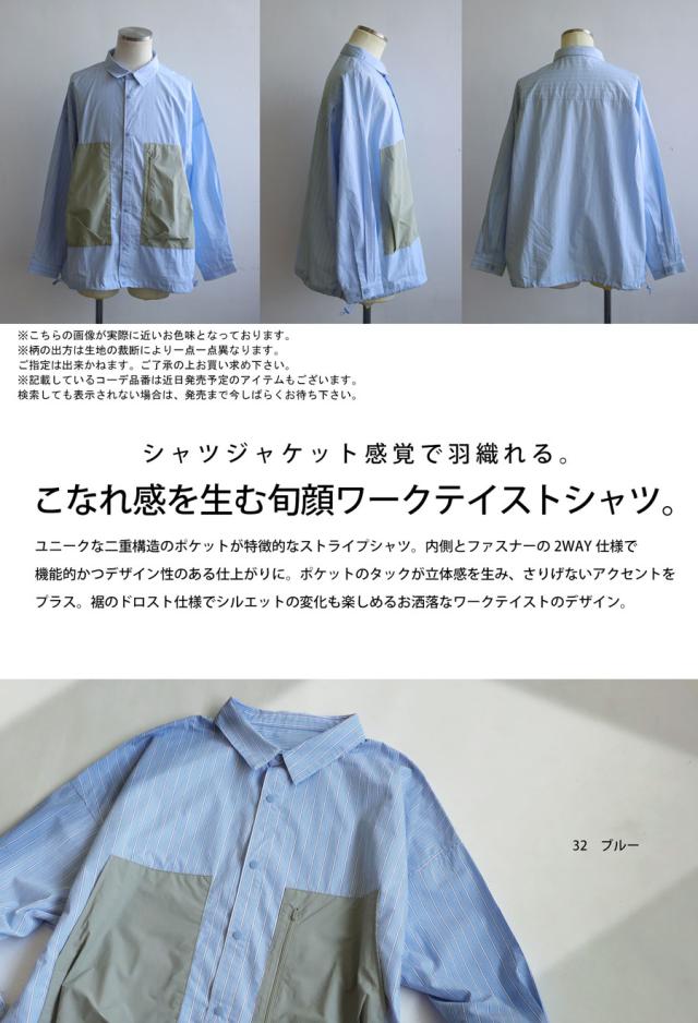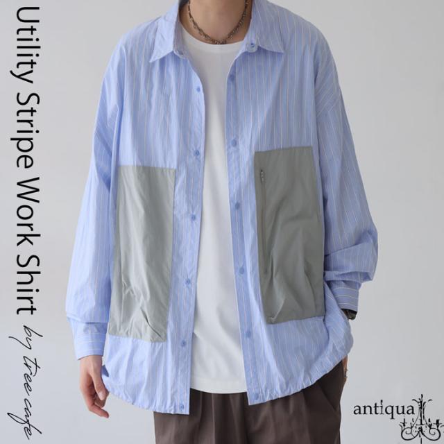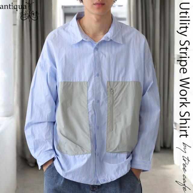 【検索ワード】ストライプワークシャツ メンズ トップス 長袖 ストライプ柄 柄シャツ 柄 切り替え 無地切り替え 配色 レギュラカラー シンプル ゆったり 羽織り 前開き ストライプ シェルボタン 上品 繊細 綿 コットン ドロスト ポケット付き ファスナーポケット 二重構造 ヨーク切り替え タック シャツジャケット スタイルアップ デザインシャツ ストライプシャツ 切り替えシャツ カジュアルシャツ ブラウス ゆったり 大きめ 大きいサイズ ブルー 青 ユニセックス 男性 男 かっこいい カッコイイ カジュアル antiqua treecafe アンティカ ツリーカフェ メンズファッション トレンド コーディネート 通販 ブランド 春 秋 あんてぃか