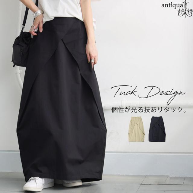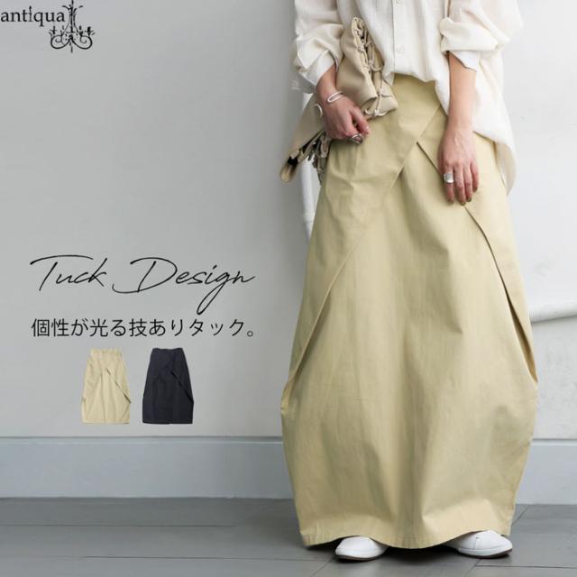 【検索ワード】タックスカート スカート レディース ボトムス ロング ロングスカート 無地 タック フレアスカート Aラインシルエット 巻きスカート風 スリット 抜け感 綿100 綿 コットン アシメ アシンメトリー ドレープ アレンジ ポケット付き ウエストゴム ゆったり モード 高級感 上品 体型カバー 細見え 着痩せ 大きめ 大きいサイズ デザインスカート ブラック 黒 ベージュ antiqua アンティカ 大人 おしゃれ 10代 20代 30代 40代 50代 60代 春 夏 秋 冬 オールシーズン お洒落 カジュアル かわいい かっこいい あんてぃか