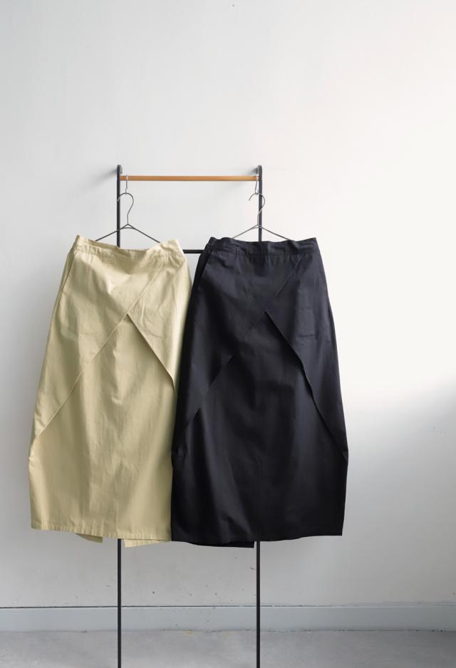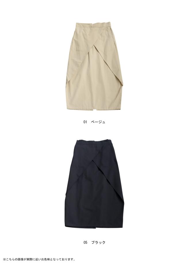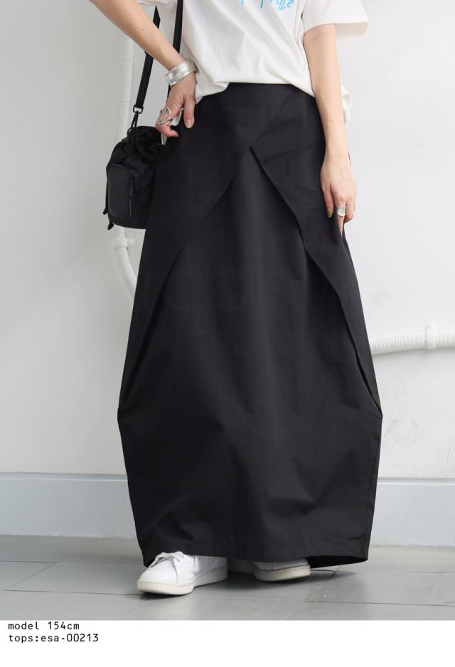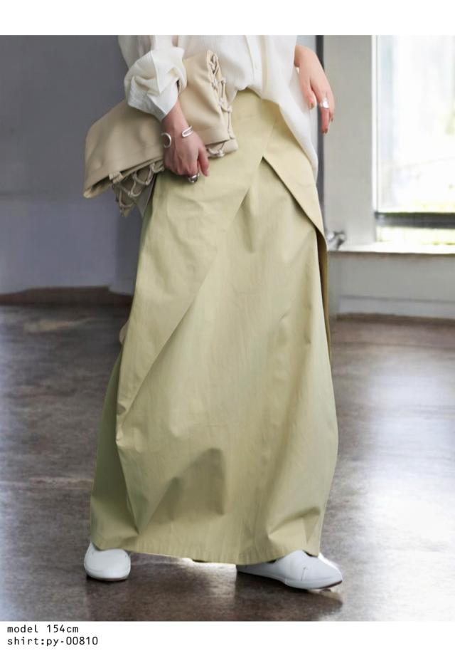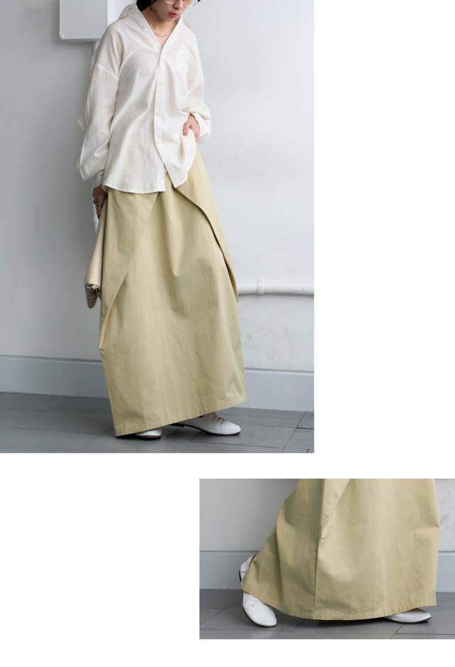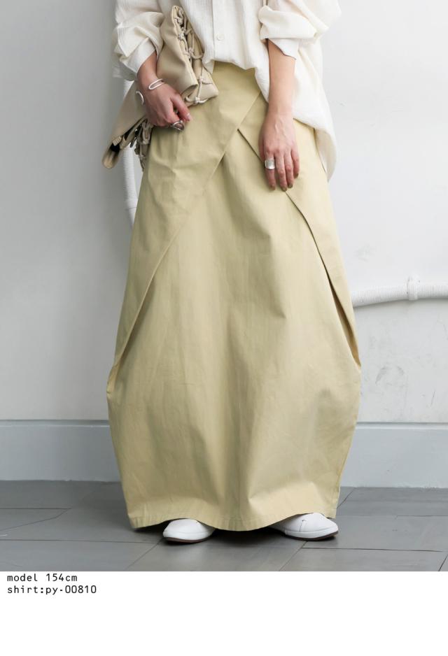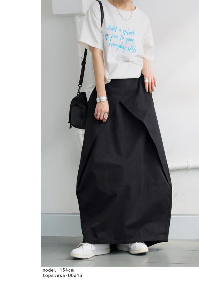 po-00188 無地 タック フレアスカート Aラインシルエット 巻きスカート風 スリット 抜け感 綿100 綿 コットン アシメ アシンメトリー ドレープ アレンジ ポケット付き ウエストゴム