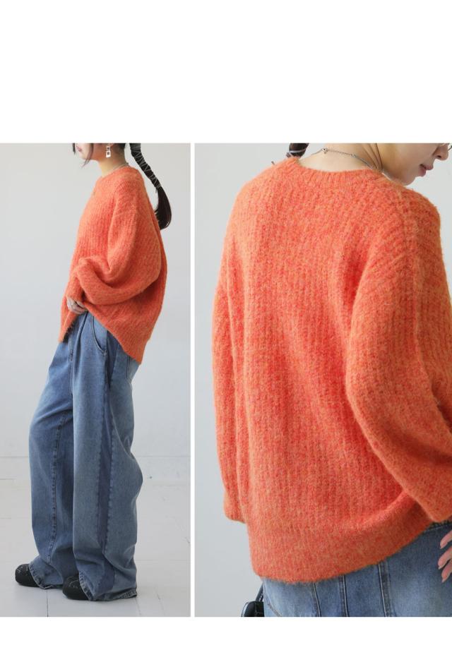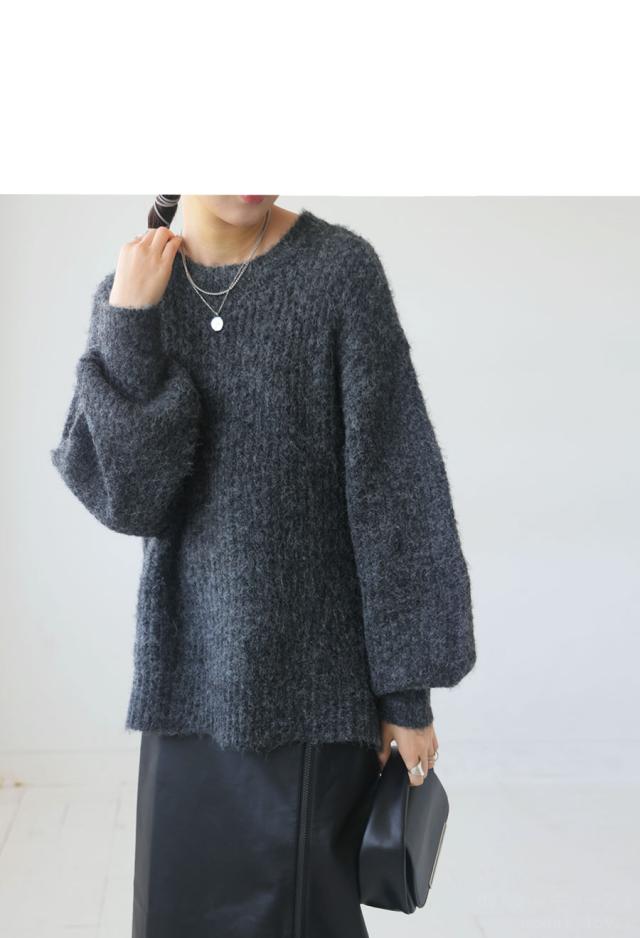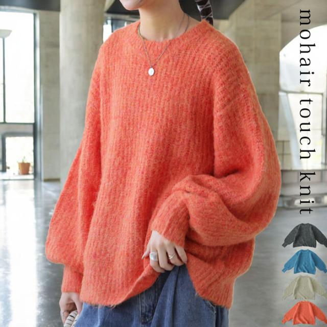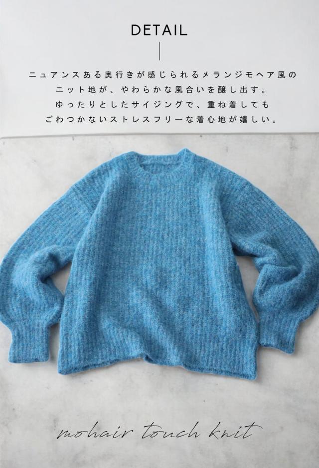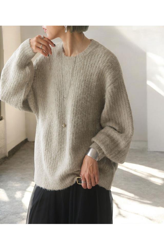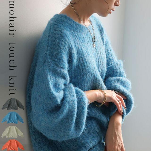 ふわっふわの柔らかい生地を使用した、トレンド感溢れるモヘア風ニット。