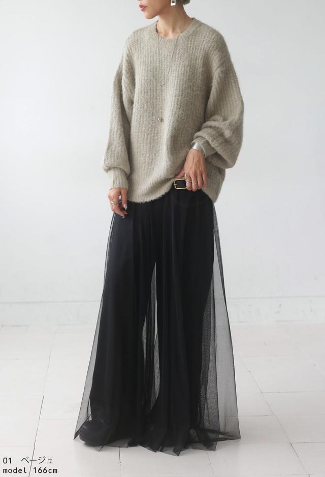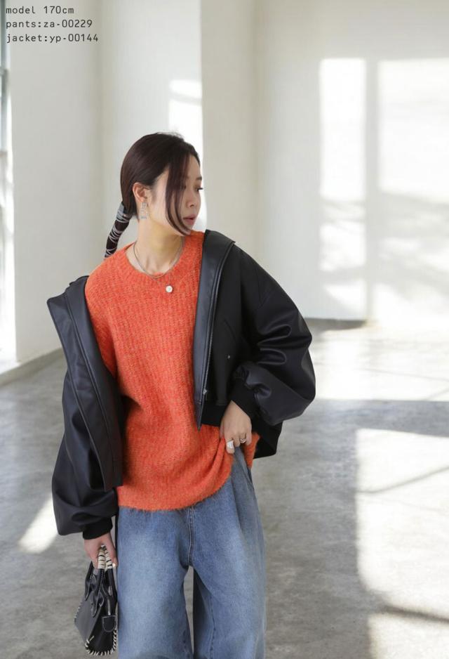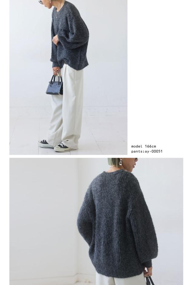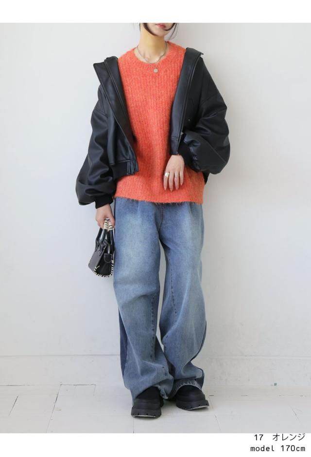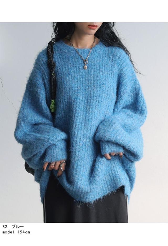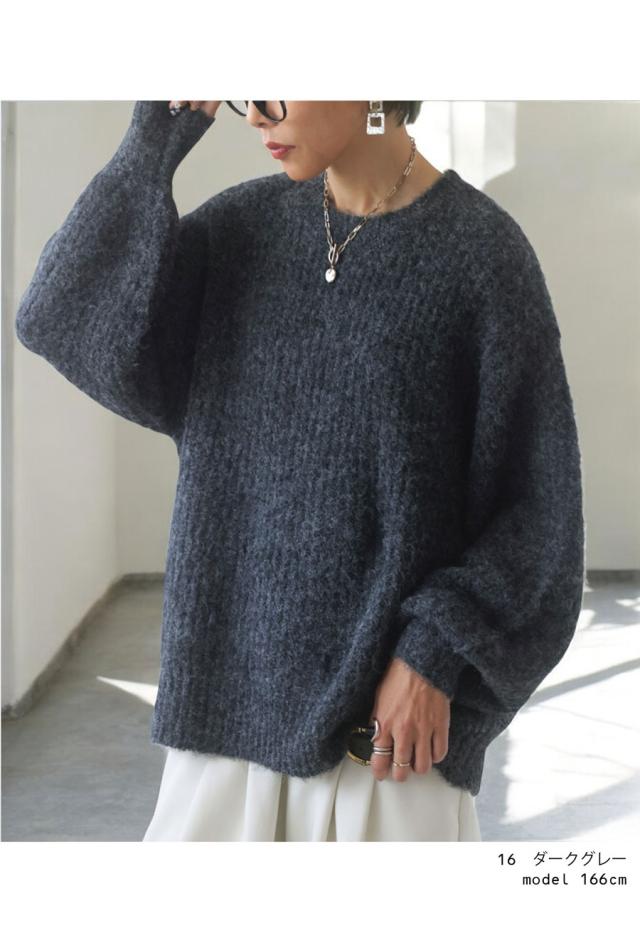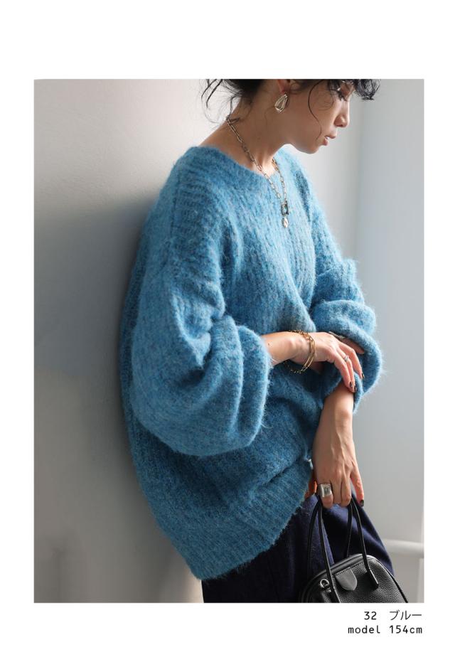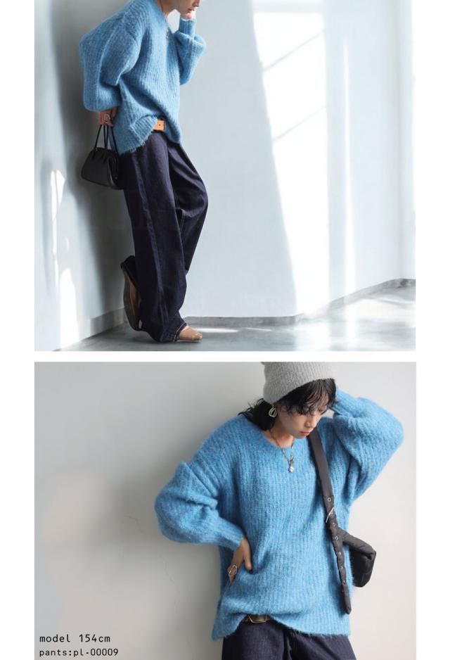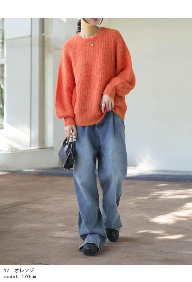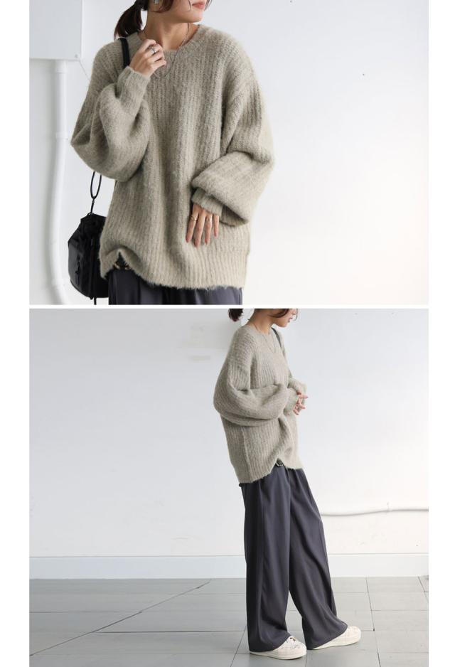 yp-00152 プルオーバー かぶり 丸首 無地 モヘア ふわふわ 立体感 片畦編み ゆったり シンプル きれいめ 柔らかい 防寒 暖かい あったか 上品 体型カバー 着痩せ 大きめ セーター