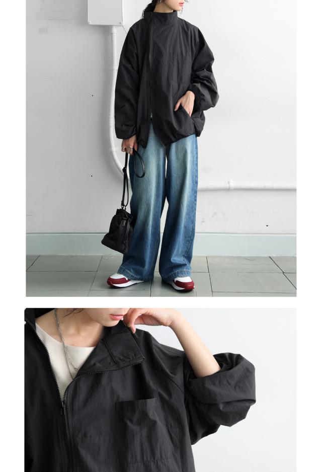 zk-00182 アウター 無地 異素材 異素材ドッキング 長袖 ジップアップ ダブルジップ スタンドネック スタンドカラー ジッパー アシメ アシンメトリー バイオウォッシング機能 ラグラン