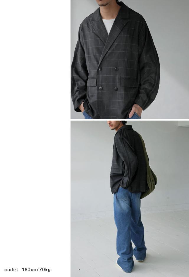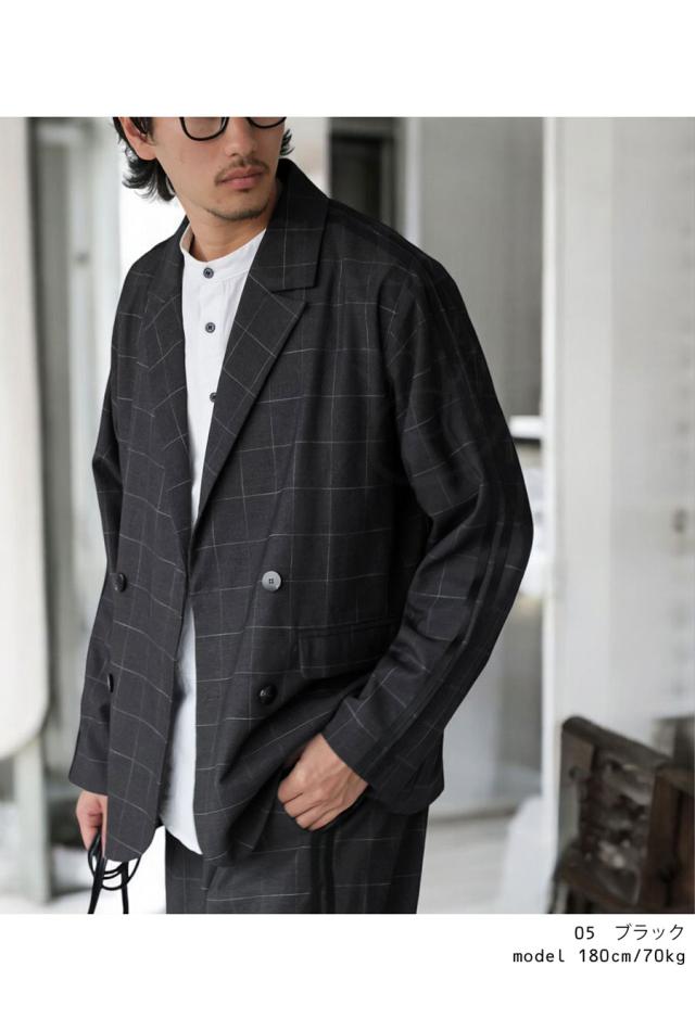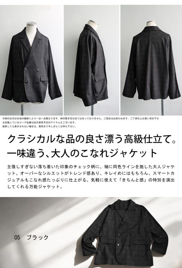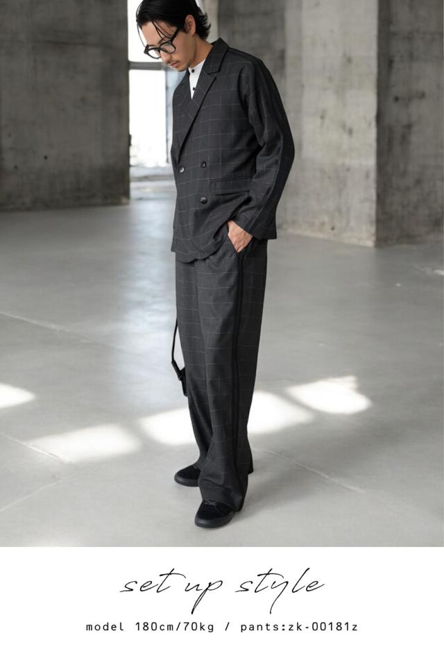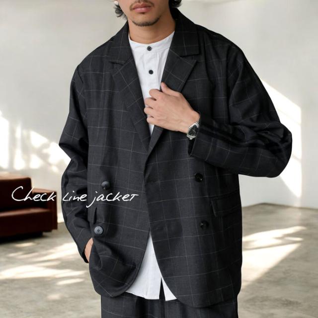 zk-00180z アウター 羽織り 長袖 セットアップ チェック柄 柄 ライン ラインデザイン テーラード 前開き ゆったり きれいめ 上品 スポーティ 体型カバー 着痩せ 大きめ ユニセックス