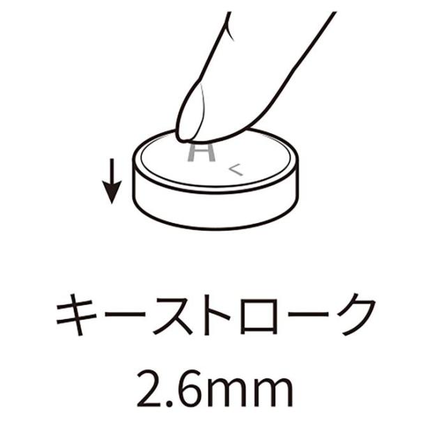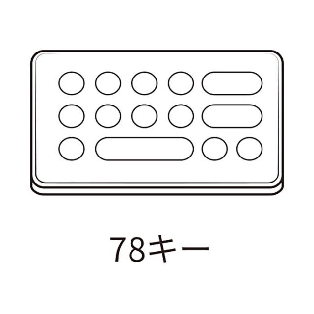 タイプライター風キートップです。Bluetooth接続なので、場所を選ばず使用できます。Bluetooth ver:5.1、最大通信距離:約10m、キー寿命:500万回、キー数:78キー、キーピッチ:18.2mm、キーストローク:2.6mm、連続動作時間:マンガン電池6時間/アルカリ乾電池25時間、使用電池:単4形乾電池2本(別売)