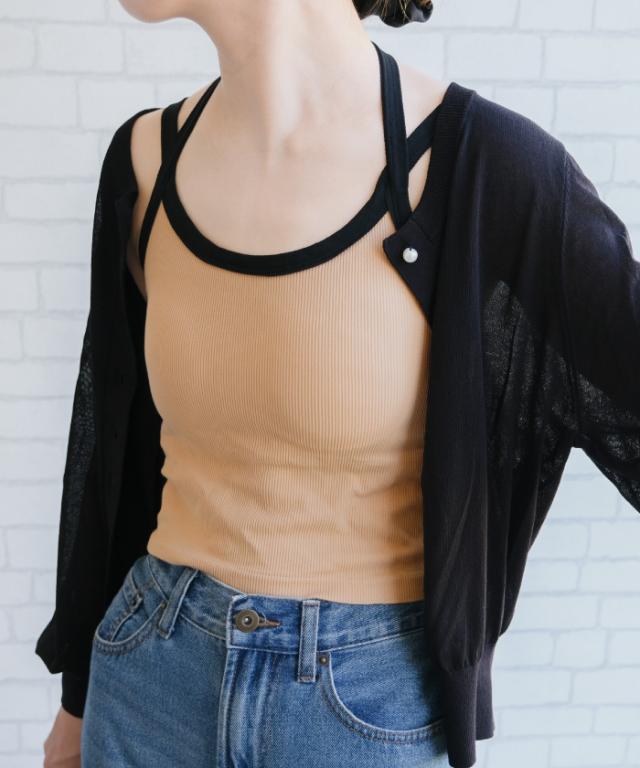 カジュアルな着こなしにぴったり!クロスパイピングブラトップ