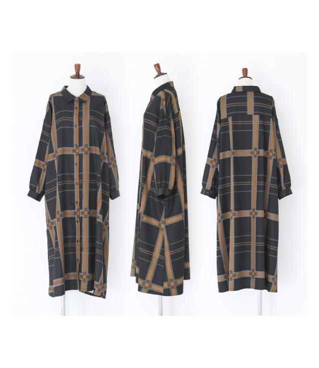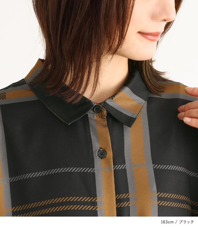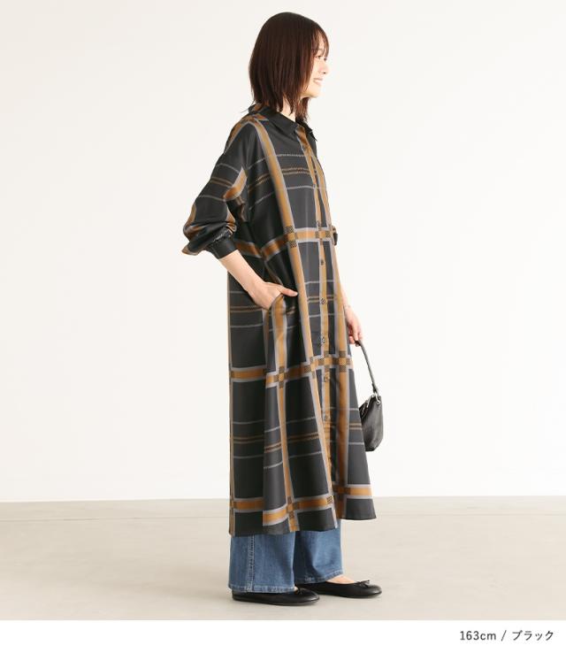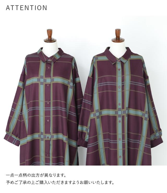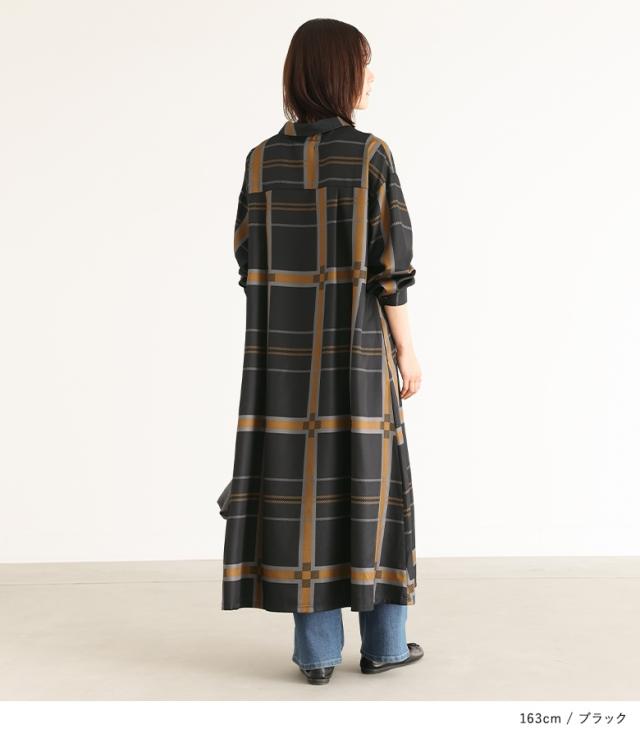 『ビッグチェック柄シャツワンピース』※メール便可※【10】[ワンピース レディース シャツワンピース ロングワンピース ワンピ シャツワンピ ロングワンピ ロング丈 オシャレウォーカー]