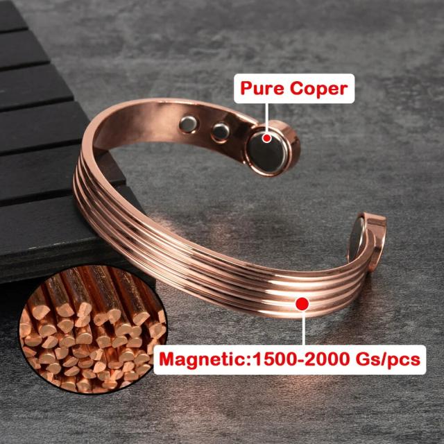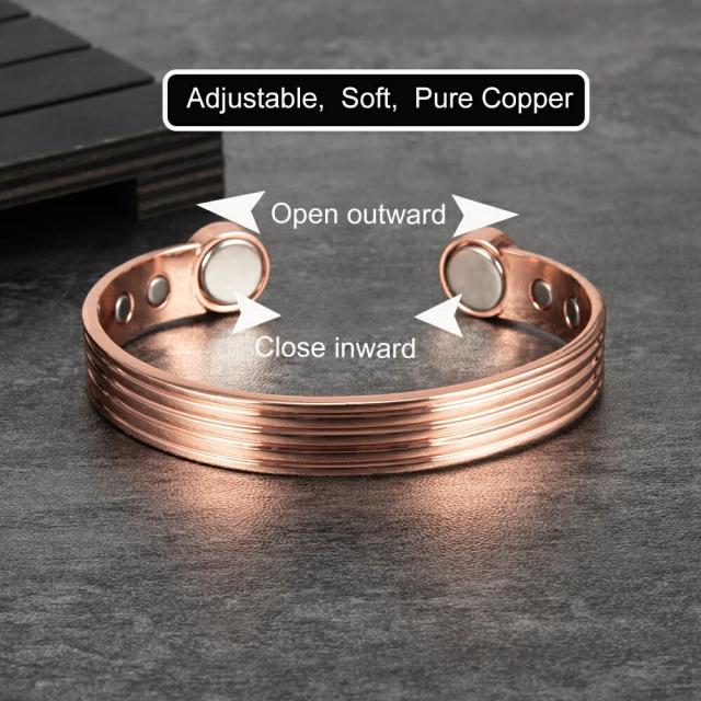 純銅製ジュエリー リング 指輪 純銅磁気ブレスレット エネルギーマグネット付き 磁気ブレスレット ストレス解消 減量 痩身 調節可能 健康エネルギー 高磁石 瞑想 ヨガ 銅ブレスレット