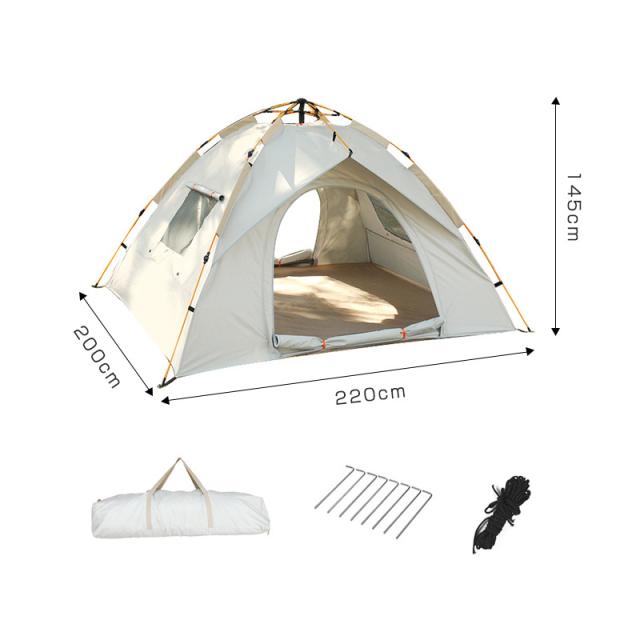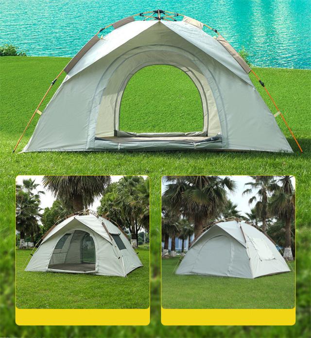 約10秒だけで簡単に設置でき、4人用大空間のワンタッチテント!