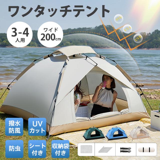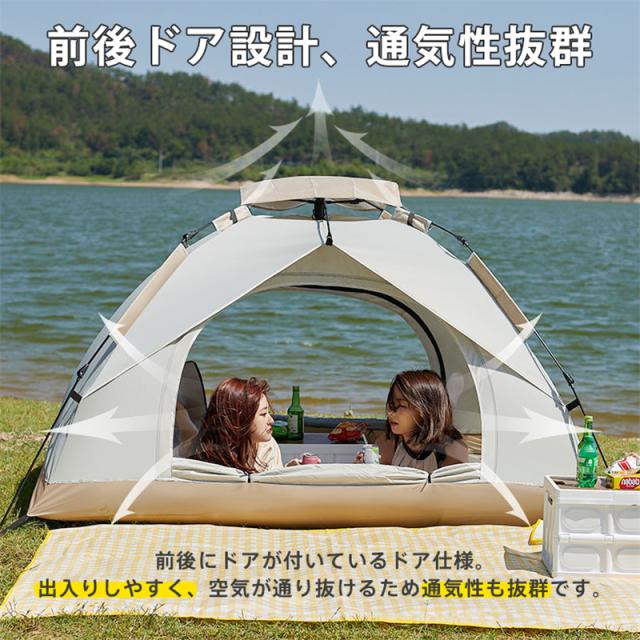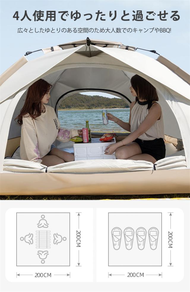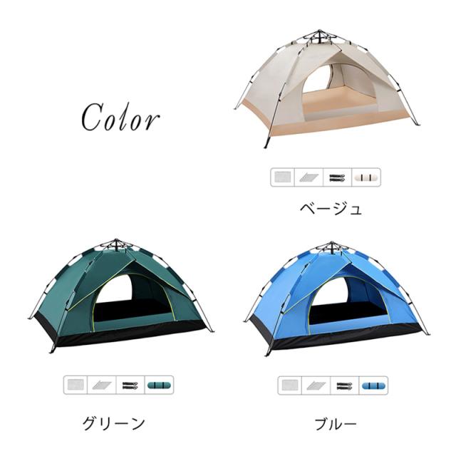 ワンタッチテント フルクローズ 4人用 大型 ドームテント キャンプ アウトドア 紫外線防止 二重層 防水 軽量 折りたたみ バビ