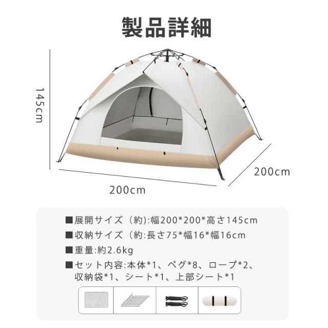 ドームテント テント ワンタッチ ドーム型 おしゃれ 簡易テント 3人用 防風 通気性に優れ 簡単設営 レジャーシート付き UVカット 日よけ 日焼け止め 多機能 ピクニック お花見 ハイキング 防災 登山 釣り 収納バック付き 運動会 大空間 遮光 遮熱 ファミリー 持ち運び 簡易トイレ