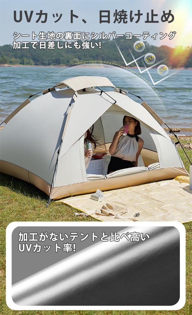 ・テントの内側にシルバーコーティングが施されており、真夏の強い紫外線をしっかりとカットしてくれます。
