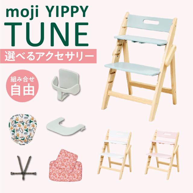 moji ハイチェア ベビーチェア yippy tune イッピー チューン キッズチェア ハイ ハイタイプ 北欧 折りたたみ モジ 天然木 木製 ほぼ完成品 高さ調節 コンパクト スターターセット フードトレイ クッション ハーネス