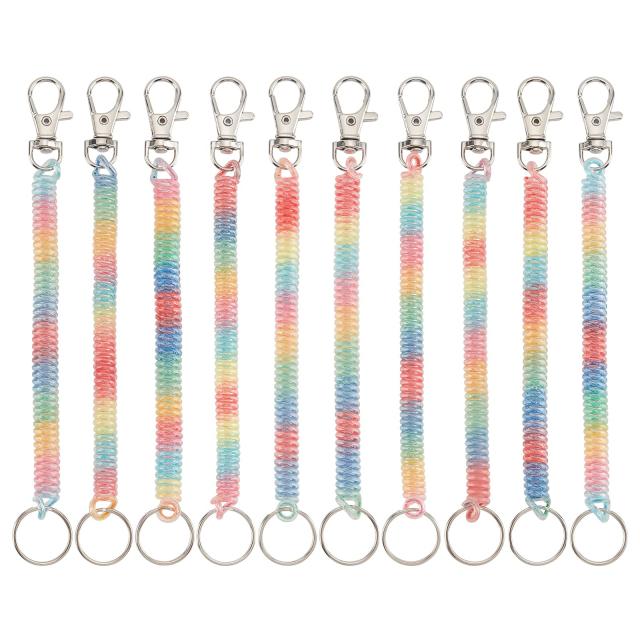 レインボー [OLYCRAFT] 10点 コイルキーチェーン レインボー カールコードストラップ コイルストラップ キーチェーン 伸びる ロック機能付き 定期券ケーズ リング スマホ 携帯 紛失防止