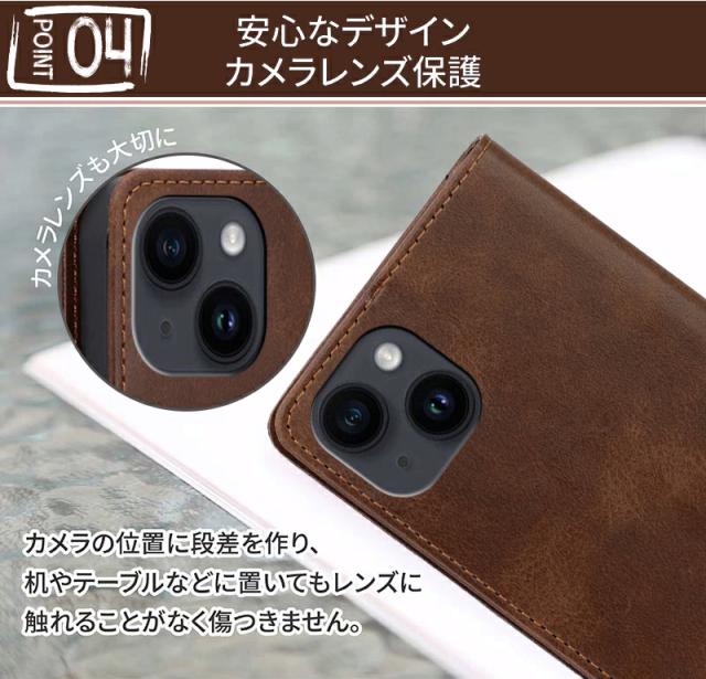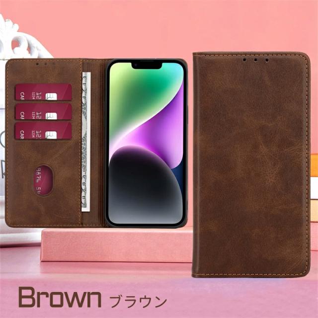高級感のある手触りがいいPUレザーを全面に使用した、落ち着いた色合いの上品な雰囲気の手帳型ケースです。