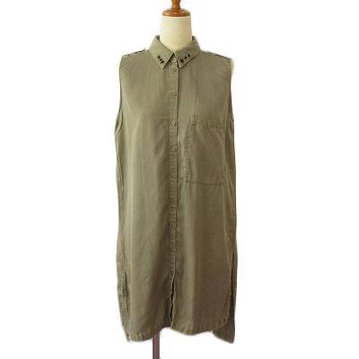 【中古】ザラ ベーシック ZARA BASIC ワンピース シャツワンピ ミリタリー ノースリーブ M 緑 カーキ レディース