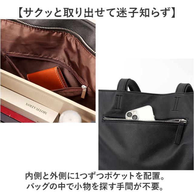 | 商品説明 | 【大人のコーデに素敵にマッチ】 ・色んなシーンで相棒に。かっこよくキマる「Control シンプル合皮トートバッグ」。 【オン・オフ問わず活躍間違いなし】 ・丈夫なフェイクレザーに、ボディと同色のステッチをプラス。スタイリッシュな印象を演出。 【開閉スムーズ、安心の天ファスナー】 ・ガバっと開いて取り出しやすく、ファスナーを閉じればプライバシーを確保。 【A4対応◎頼りになる収納力】 ・A4サイズがすっぽり。マチもあり、通勤や出張、1泊程度の旅行にもおすすめ。 (※)B4サイズは角が折れたり、ファスナーが閉まりにくい可能性があります。 【サクッと取り出せて迷子知らず】 ・内側と外側に1つずつポケットを配置。バッグの中で小物を探す手間が不要。 【肩掛けできてストレスフリー】 ・ハンドルは、肩に掛けられる長さに設計。荷物が重くなっても大丈夫。 【飽きが来ず長く愛用できるアイテム】 ・ワンカラーのボディに、シルバーのメタルウェアがアクセント。フロントには型押しロゴ入り。 【使い心地を追求したControl】 ・アウトドアやワークスタイルにも使える機能性とデザインが魅力。 【ポケット仕様】 ・内側:ファスナーポケット×1 ・背面:ファスナーポケット×1 |