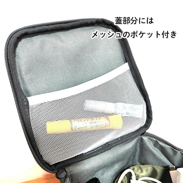 蓋部分にもメッシュのポケットがついているので、こちらも便利にお使いいただけます。