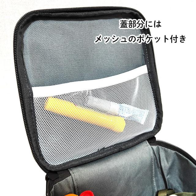 蓋部分にもメッシュのポケットがついているので、こちらも便利にお使いいただけます。