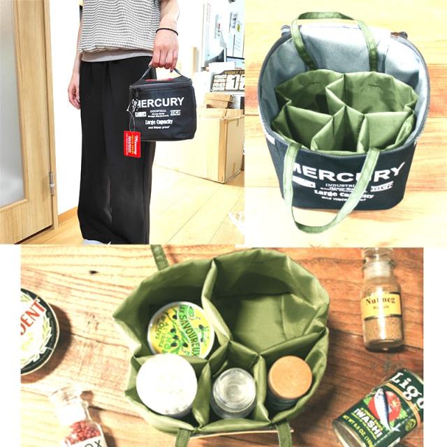アウトドア用途でスパイスバッグが人気です。調味料を仕切りケースに整理して入れ、持ち運べます。