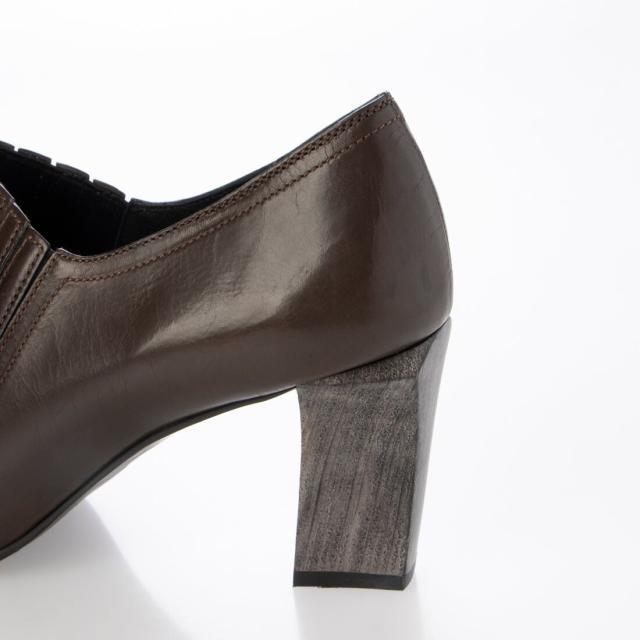すっと伸びたトゥラインと70mmのブロックヒールは女性らしさを感じさせます。