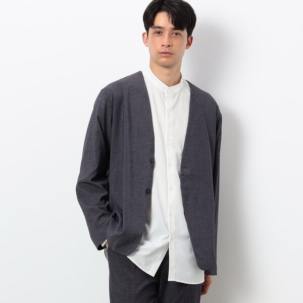 【セットアップ対応】 デニムライクジャージー ノーカラー ジャケット